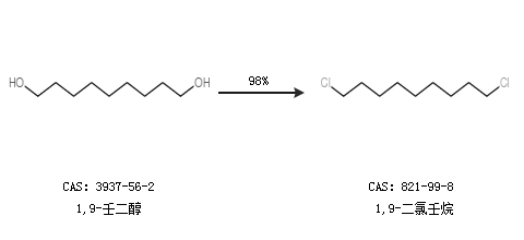1.通过1,9-壬二醇合成1,9-二氯壬烷,收率约98%;