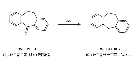 1.通过10,11-二氢二苯并[a,b]环庚烯-5-酮合成10,11-二氢-5H-二苯并[a,d]环庚烯,收率约97%;