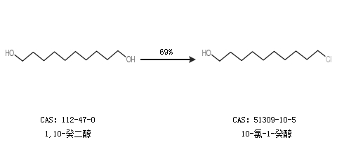 1.通过1,10-癸二醇合成10-氯-1-癸醇,收率约69%;