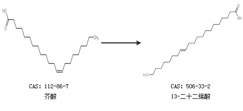 英文别名 Einecs 208-035-5;isoerucic acid;13TR-DOCOSENOIC ACID;brassidic acid;TRANS-DOCOSENOICACID;docos-13t-enoic acid;trans-erucic acid;Brassidinsaeure;docos-13-enoic acid;