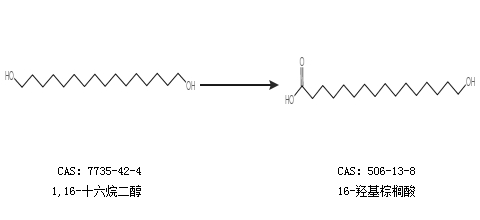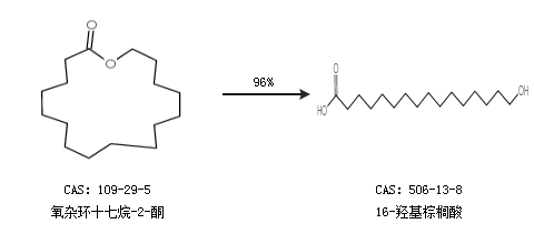 1.通过氧杂环十七烷-2-酮合成16-羟基棕榈酸,收率约96%;