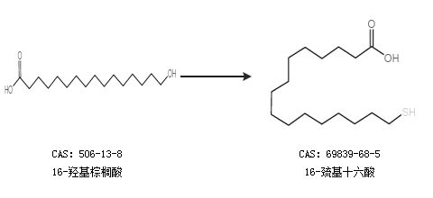 2.通过16-羟基棕榈酸合成16-巯基十六酸