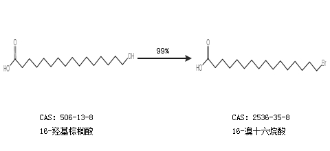 1.通过16-羟基棕榈酸合成16-溴十六烷酸,收率约99%;