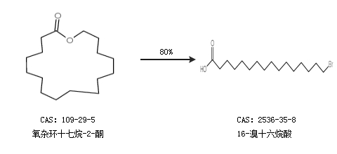2.通过氧杂环十七烷-2-酮合成16-溴十六烷酸,收率约80%;