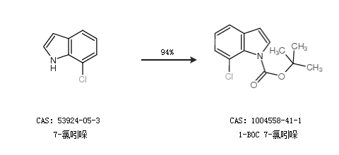 1.通过7-氯吲哚合成1-BOC 7-氯吲哚,收率约94%;