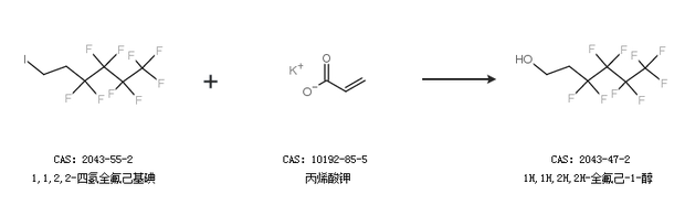 1.通过1,1,2,2-四氢全氟己基碘和丙烯酸钾合成1H,1H,2H,2H-全氟己-1-醇