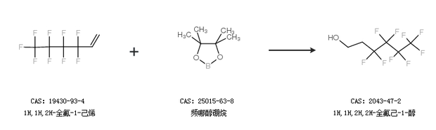 2.通过1H,1H,2H-全氟-1-己烯和频哪醇硼烷合成1H,1H,2H,2H-全氟己-1-醇