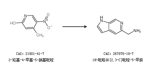 2.通过2-羟基-4-甲基-5-硝基吡啶合成1H-吡咯并[2,3-C]吡啶-5-甲胺
