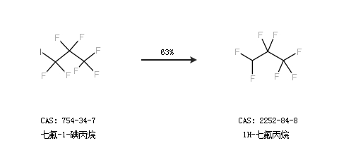 1.通过七氟-1-碘丙烷合成1H-七氟丙烷,收率约63%;