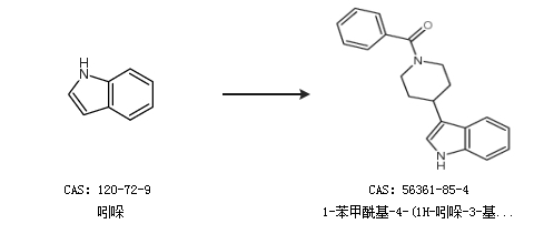 2.通过吲哚合成1-苯甲酰基-4-(1H-吲哚-3-基)哌啶