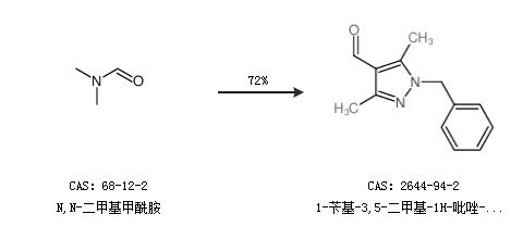 1.通过N,N-二甲基甲酰胺合成1-苄基-3,5-二甲基-1H-吡唑-4-甲醛,收率约72%;