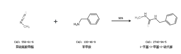 1.通过异硫氰酸甲酯和苯甲胺合成1-苄基-3-甲基-2-硫代脲,收率约98%;