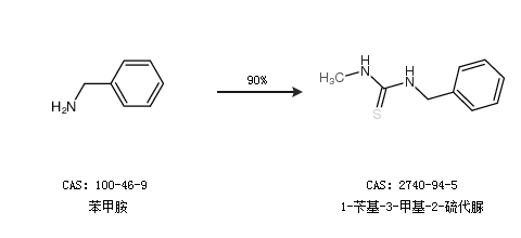 2.通过苯甲胺合成1-苄基-3-甲基-2-硫代脲,收率约90%;