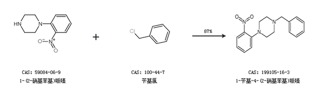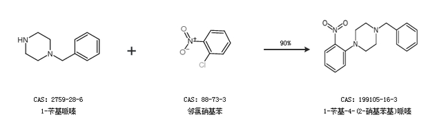 2.通过1-苄基哌嗪和邻氯硝基苯合成1-苄基-4-(2-硝基苯基)哌嗪,收率约90%;