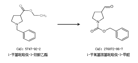2.通过1-苄基吡咯烷-3-羧酸乙酯合成1-苄氧基羰基吡咯烷-3-甲醛
