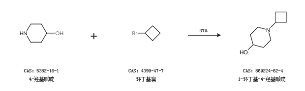 2.通过4-羟基哌啶和环丁基溴合成1-环丁基-4-羟基哌啶,收率约37%;