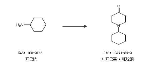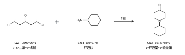 1.通过1,5-二氯-3-戊酮和环己胺合成1-环己基-4-哌啶酮,收率约73%;