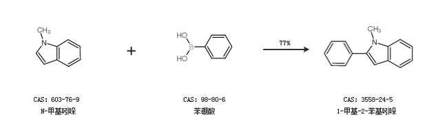 2.通过N-甲基吲哚和苯硼酸合成1-甲基-2-苯基吲哚,收率约77%;