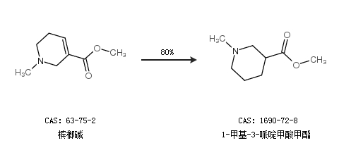 1.通过槟榔碱合成1-甲基-3-哌啶甲酸甲酯,收率约80%;