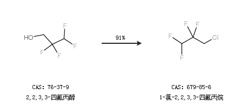 1.通过2,2,3,3-四氟丙醇合成1-氯-2,2,3,3-四氟丙烷,收率约91%;