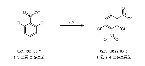 1.通过1,3-二氯-2-硝基苯合成1-氯-2,4-二硝基氯苯,收率约98%;