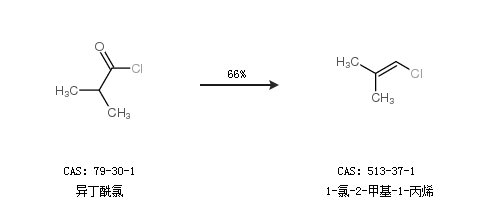 1.通过异丁酰氯合成1-氯-2-甲基-1-丙烯,收率约66%;