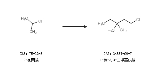 2.通过2-氯丙烷合成1-氯-3,3-二甲基戊烷
