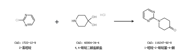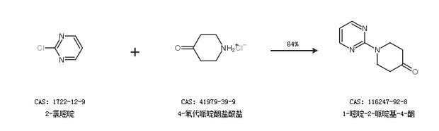 1.通过2-氯嘧啶和4-氧代哌啶酮盐酸盐合成1-嘧啶-2-哌啶基-4-酮,收率约64%;