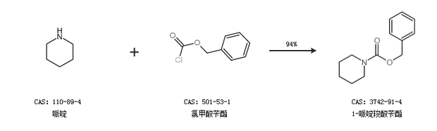 2.通过哌啶和氯甲酸苄酯合成1-哌啶羧酸苄酯,收率约94%;