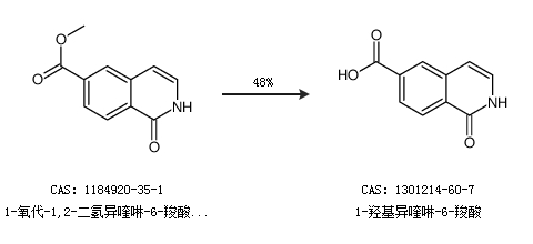 1.通过1-氧代-1,2-二氢异喹啉-6-羧酸甲酯合成1-羟基异喹啉-6-羧酸,收率约48%;