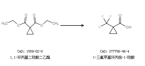 2.通过1,1-环丙基二羧酸二乙酯合成1-三氟甲基环丙烷-1-羧酸