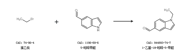 1.通过溴乙烷和5-吲哚甲醛合成1-乙基-1H-吲哚-5-甲醛