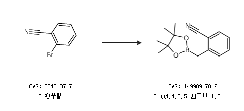 2.通过2-溴苯腈合成2-((4,4,5,5-四甲基-1,3,2-二噁硼烷-2-基)甲基)苯甲腈