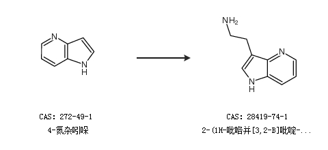 1.通过1H-吡咯并[3,2-b]吡啶-3-乙腈合成2-(1H-吡咯并[3,2-B]吡啶-3-乙胺,收率约96%;