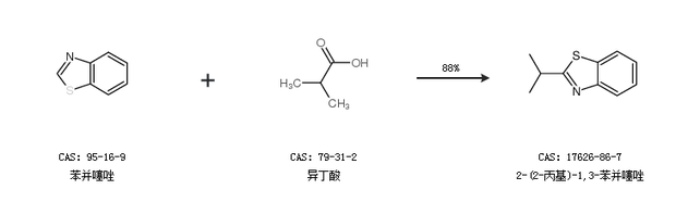 2.通过苯并噻唑和异丁酸合成2-(2-丙基)-1,3-苯并噻唑,收率约88%;