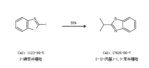 1.通过2-碘苯并噻唑合成2-(2-丙基)-1,3-苯并噻唑,收率约55%;