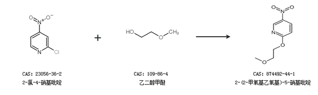 2.通过2-氯-4-硝基吡啶和乙二醇甲醚合成2-(2-甲氧基乙氧基)-5-硝基吡啶