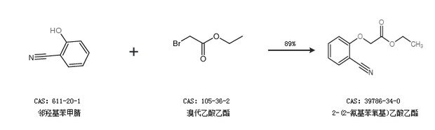 1.通过邻羟基苯甲腈和溴代乙酸乙酯合成2-(2-氰基苯氧基)乙酸乙酯,收率约89%;