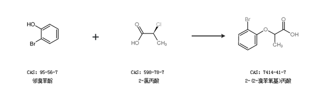 1.通过邻溴苯酚和2-氯丙酸合成2-(2-溴苯氧基)丙酸