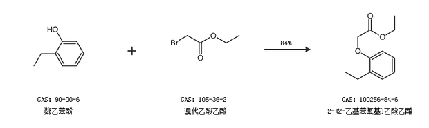 1.通过鄰乙苯酚和溴代乙酸乙酯合成2-(2-乙基苯氧基)乙酸乙酯,收率约84%;