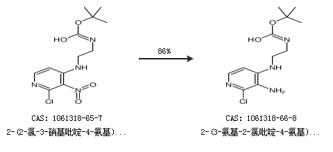 1.通过2-(2-氯-3-硝基吡啶-4-氨基)乙基氨基甲酸叔丁酯合成2-(3-氨基-2-氯吡啶-4-氨基)乙基氨基甲酸叔丁酯,收率约86%;
