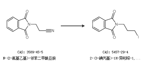 2.通过N-(2-氰基乙基)-邻苯二甲酰亚胺合成2-(3-碘丙基)-1H-异吲哚-1,3(2H)-二酮