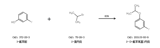 1.通过3-氟苯酚和2-溴丙烷合成2-(3-氟苯氧基)丙烷,收率约83%;