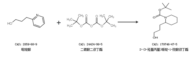 1.通过吡啶醇和二碳酸二叔丁酯合成2-(3-羟基丙基)哌啶-1-羧酸叔丁酯