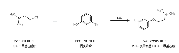 1.通过N,N-二甲基乙醇胺和间溴苯酚合成2-(3-溴苯氧基)-N,N-二甲基乙胺,收率约64%;