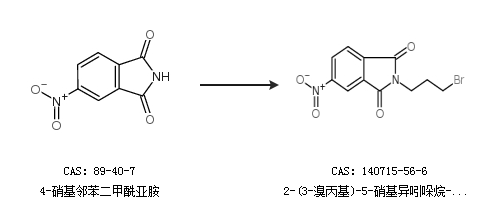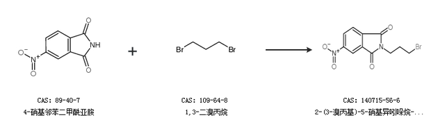 2.通过4-硝基邻苯二甲酰亚胺和1,3-二溴丙烷合成2-(3-溴丙基)-5-硝基异吲哚烷-1,3-二酮