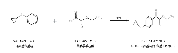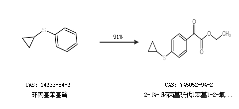 1.通过环丙基苯基硫合成2-(4-(环丙基硫代)苯基)-2-氧代乙酸乙酯,收率约91%;