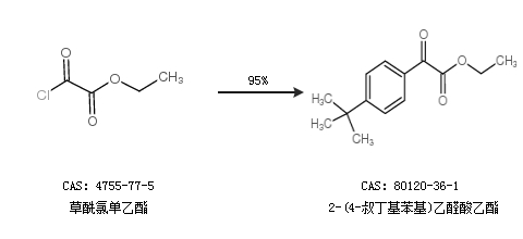2.通过草酰氯单乙酯合成2-(4-叔丁基苯基)乙醛酸乙酯,收率约95%;