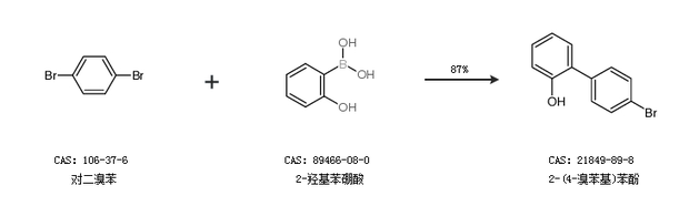 2.通过对二溴苯和2-羟基苯硼酸合成2-(4-溴苯基)苯酚,收率约87%;
