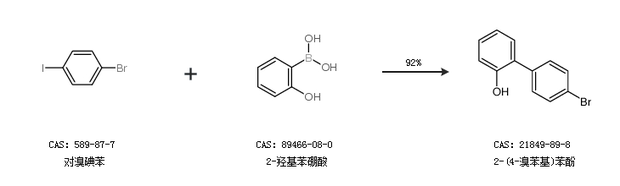 1.通过对溴碘苯和2-羟基苯硼酸合成2-(4-溴苯基)苯酚,收率约92%;